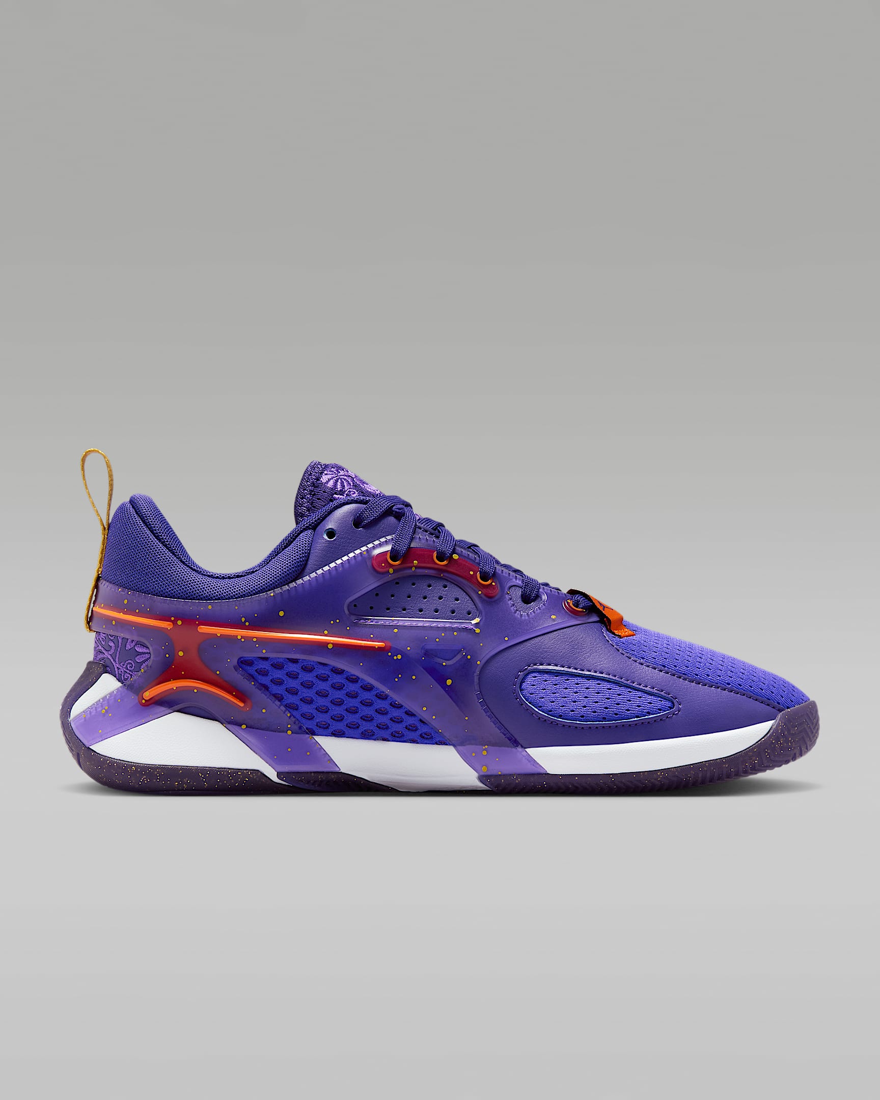 You're not afraid to claim your title and bask in life's luxuries. And this Heir Series is all about luxury. Rich shades of purple and gold mix with ornate embroidery for a regal look. Court-ready tech, like a drop-in midsole for extra mobility, a built-in cage for stability and herringbone traction for grip, help you show off your skills like the all-star you are.